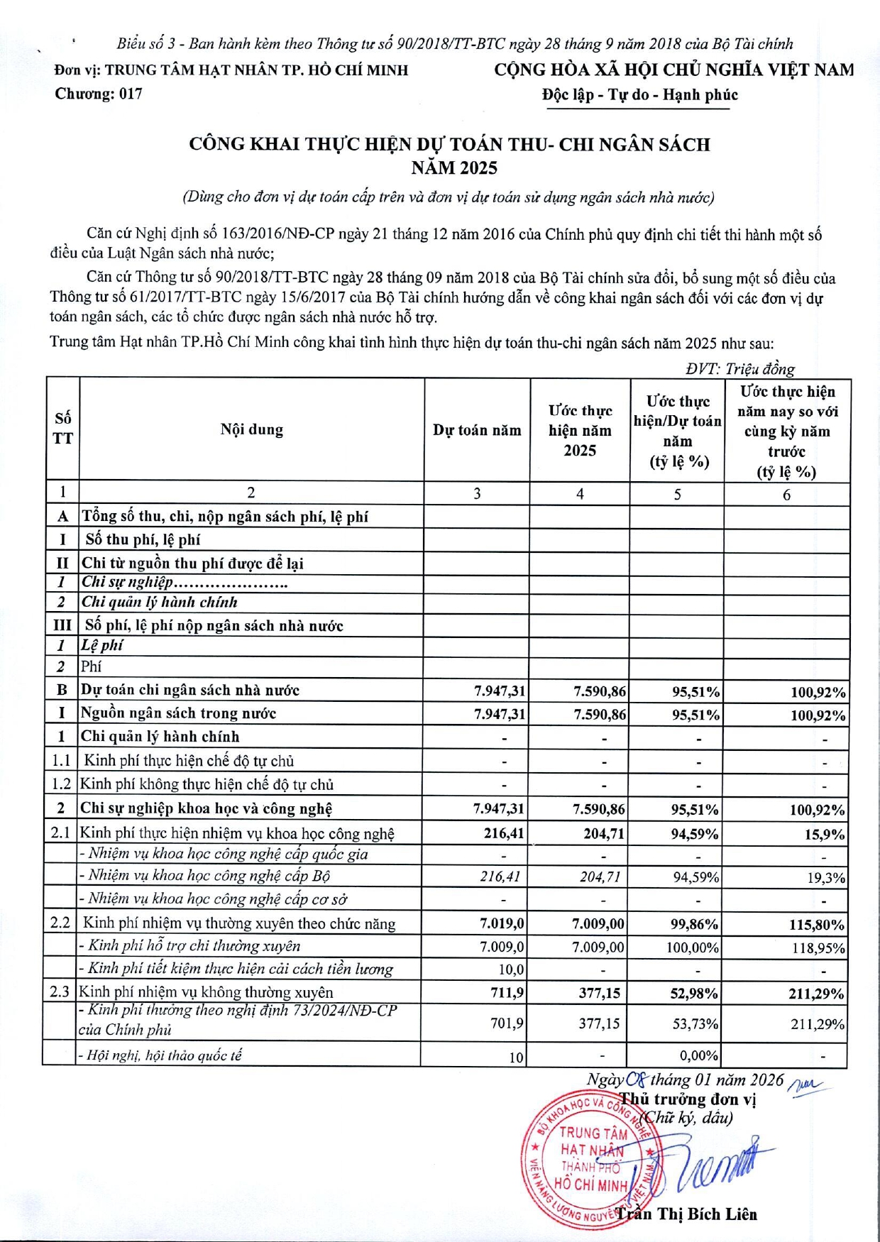 Công bố công khai dự toán ngân sách Quý I và năm 2025 của Trung tâm Hạt nhân Thành phố Hồ Chí Minh By Quản Trị | 14/04/2025